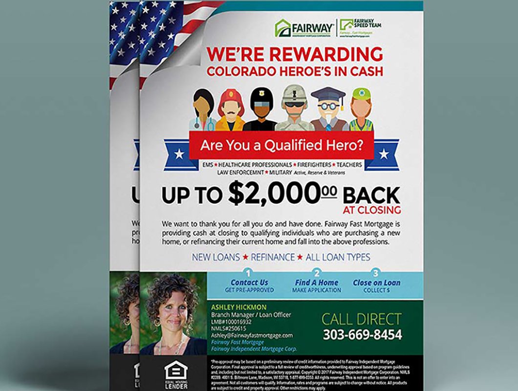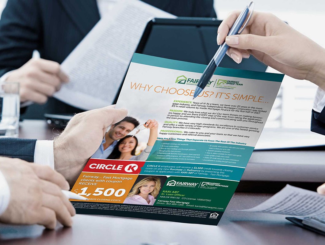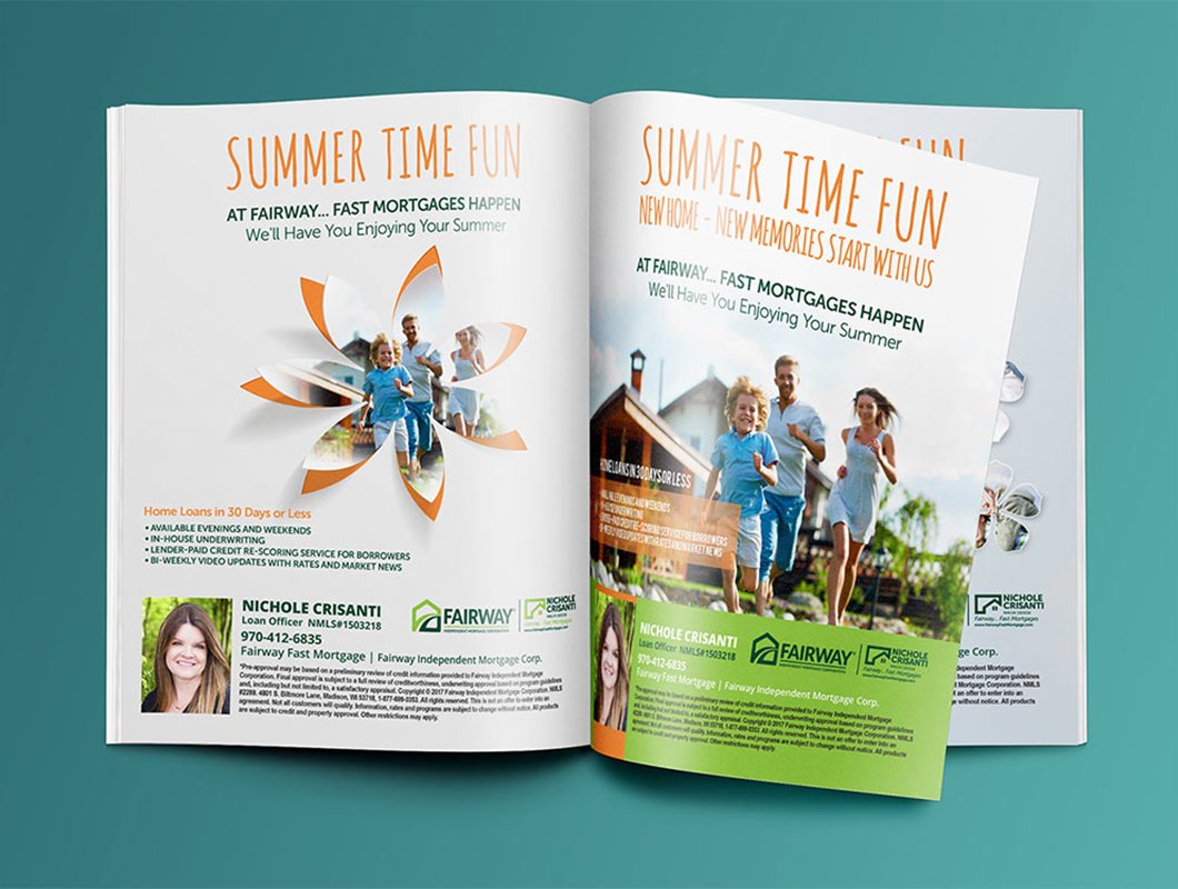 Samples of various graphic print and web work for Fairway… Fast Mortgage